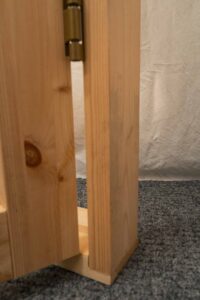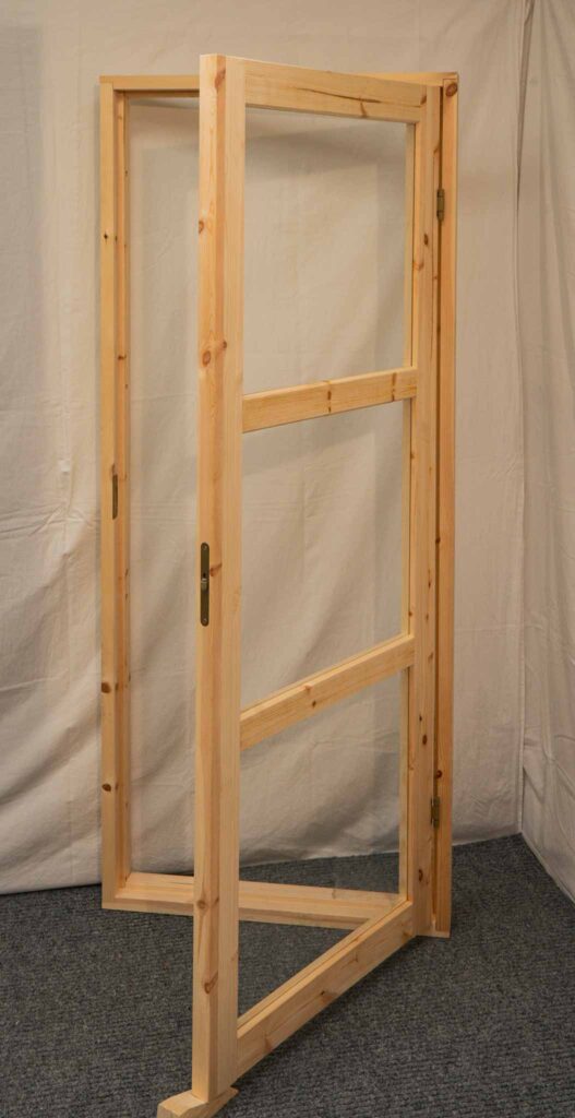 Karmi on valmistettu terveoksaisesta mäntyliimapuusta, joka on mittapysyvä ja vääntymätön. Ovessa on kaksi kpl symmetrisiä saranoita ja lukkorunkona säädettävä rullasalpa, jonka ansiosta ovi sulkeutuu sulavasti ja pysyy kiinni jämäkästi. Oven symmetristen saranoiden ja lukkorungon ansiosta oven voi asentaa kumman kätiseksi vain.