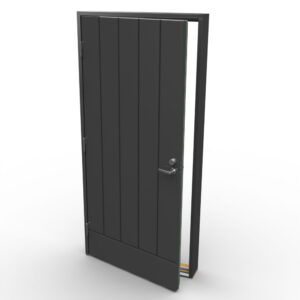 Lämpöeristetty 60 mm vahva ovilehti. Molemmat oven pinnat on alumiinilevyin vahvistettu. Oven pinta säänkestävä HDF-pinta maalattu tummanharmaa RR23. Ulko- ja sisäpuolelta sileä.