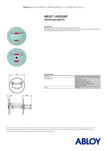 Välioven wc-hela Abloy LH001WC messinki tai teräs satiinikromi, vääntönuppi muovia satiinikromi. Normaaliversio soveltuu sisäoviin, joiden paksuus on 40mm, saatavissa myös L-versio, jossa vääntönupin kara sekä ruuvit ovat pidemmät, näissä versioissa karan katkaisu tapahtuu kohteessa oven paksuuden mukaan.